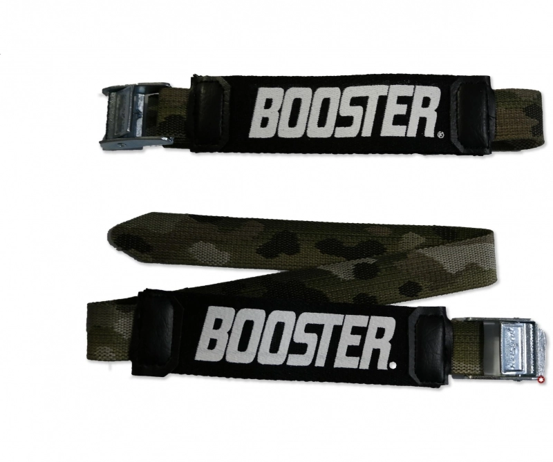 Le Booster est compos2 d’une courroie Ă©lastique trĂšs rĂ©sistante et d’une boucle mĂ©tallique micro rĂ©glable.